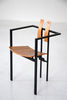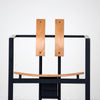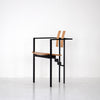 ブラックスチールのフレームと成形プライウッドを組み合わせた、幾何学的な構成を取り入れた一脚。